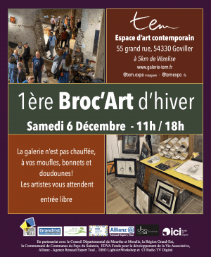 TEM espace d'art contemporain a le plaisir d'annoncer sa 1ère "Broc'Art d'hiver"le samedi 6 décembre 2025 de 11 heures à 18 heures, à Goviller.