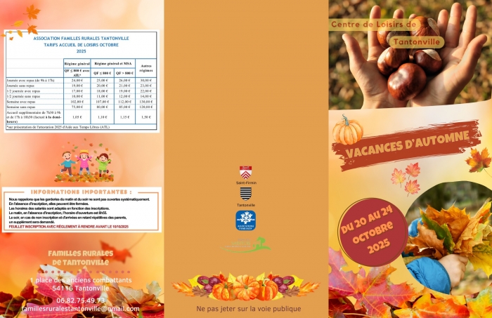 Du 20 Octobre 2025 au 24 Octobre 2025 Manifestations Centre de loisirs de Tantonville - vacances d'automne