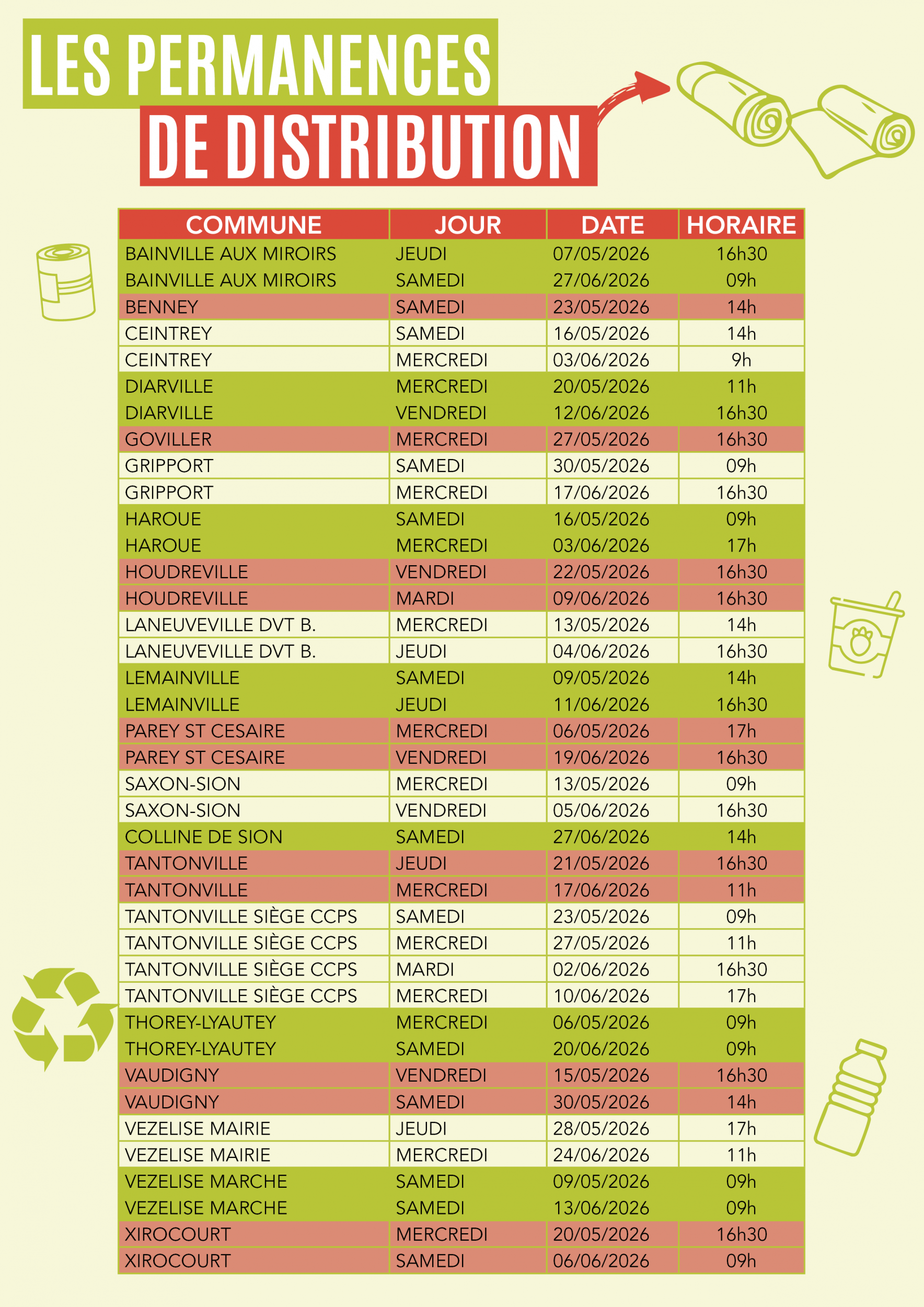 | COMMUNE | JOUR | DATE | HORAIRE |