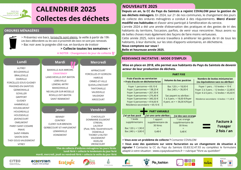 Depuis le 1er janvier 2024, la société publique locale COVALOM est chargée de la gestion des déchets pour tout le territoire du Pays du Saintois.